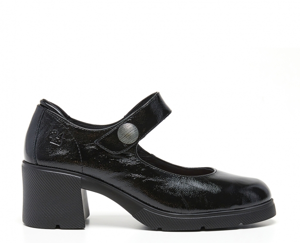 Mercedes 24 horas en charol, tacón mediano. Muy flexible y confortable, ideal para uso diario. Elegancia clásica con máximo confort y estilo versátil.