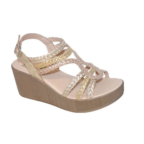 Sandalia 24 horas metalizada con cuña y plataforma, tiras trenzadas, cómoda y elegante, ideal para diario, aporta altura, estabilidad, estilo moderno y confort duradero femenino
