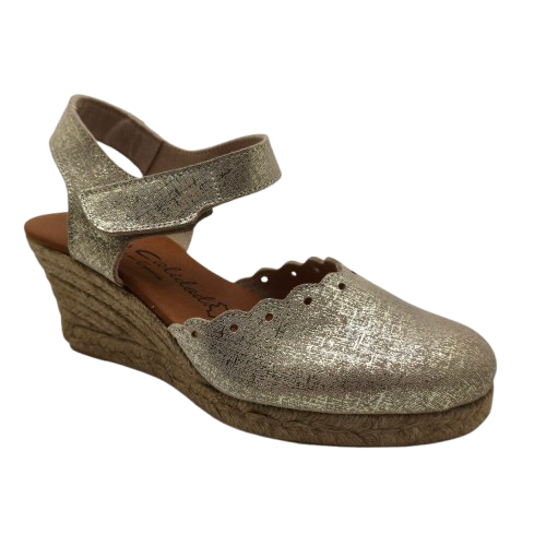 Zapato yute Torres con cuña metalizado y cierre velcro, diseño cómodo y elegante, plantilla acolchada, ajuste práctico, ideal para verano y uso diario femenino actual